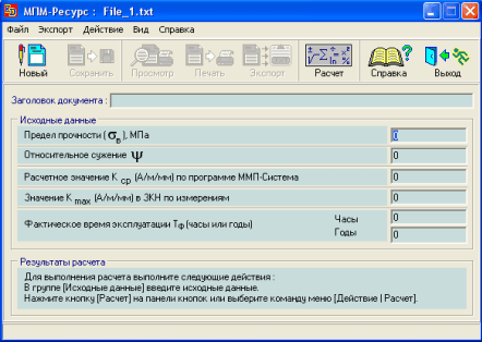В программе используются справочные механические характеристики металла объекта контроля (ОК) и данные, полученные с помощью программы "МПМ-Система" по результатам контроля ОК.